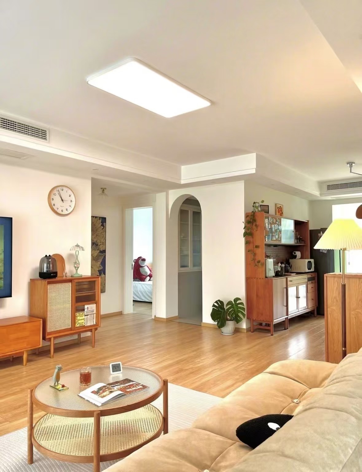 在软装饰方面,碎花元素不可或缺。窗帘选用浅色系的小碎花图案,阳光透过,洒下斑驳的光影,营造出一种静谧的氛围。床上用品也可以是柔软的纯棉碎花套件,让每一个夜晚都充满田园的甜梦。绿植更是原木田园风的灵魂点缀,几盆绿萝、吊兰或者多肉植物,错落有致地放置在窗台、茶几、书架上,为整个空间注入生机与活力,仿佛将室外的花园引入了室内。